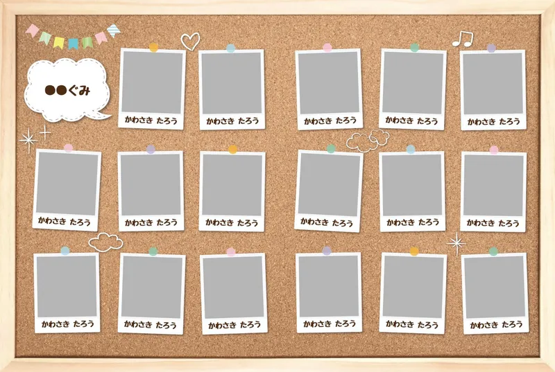 卒園アルバム工房では、子どもたちや先生の写真を透過PNG画像として切り抜いて配置できるレイアウトが紹介されています。写真の背後を透過し、背景やイラストとの組み合わせで、まるで飛び出す絵本のような躍動感を演出できるという手法です。切り抜いた写真を背景に重ねることで、手づくり感や立体感のある表紙になります。