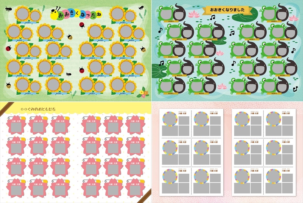 たくさんの表紙テンプレートの中から園にぴったりのデザインを選んで、写真やイラストを配置するだけで素敵な表紙ができあがります。 切り抜き画像を活用すれば、もっと自由でかわいらしい“園だけのデザイン”が叶います。
