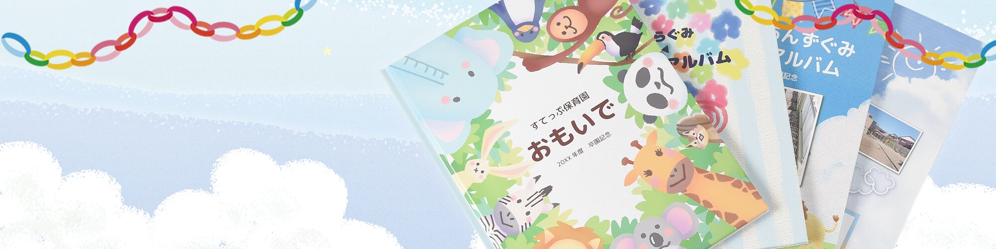 卒園アルバムの表紙には、子どもたちの笑顔や園の個性がたっぷり詰まっています。ふぉとすてっぷでは、初めてでも簡単に操作できるWeb制作ツールと、100種類以上の表紙テンプレートをご用意。